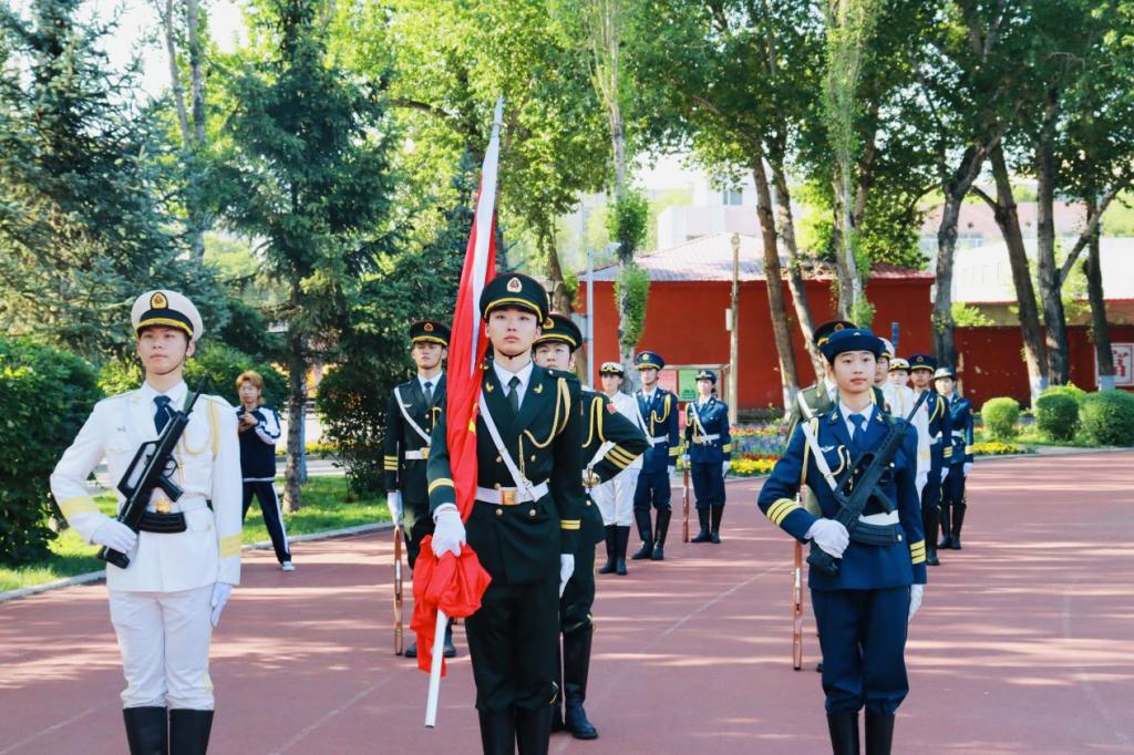 伴随着公司师生的热切目光,国旗护卫队迈着整齐划一的步伐护送国旗至升旗台下。7时整,激昂的国歌准时奏响,全体师生庄严肃立,目光坚定,怀着崇高的敬意,行注目礼。鲜艳的五星红旗在朝阳的映照下,冉冉升起,迎风飘扬,点燃了在场每一个人心中炽热的爱国情怀。