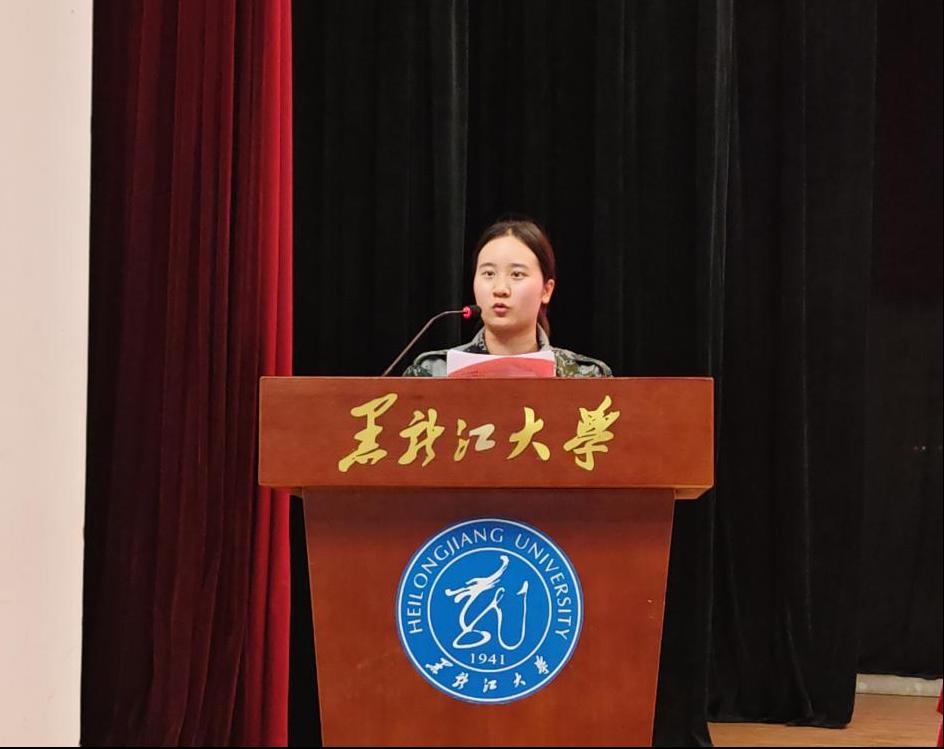 在校生代表2024级研究生曲桂竹同学发言时豪情万丈,他鼓励同学们要以学为本,筑牢根基;要勇于创新,追求卓越;要团结协作,共同进步;心怀梦想,砥砺前行。同时希望同学们传承黑大精神,续写黑大故事,努力成为志存高远、爱国奉献、艰苦奋斗、自强不息的黑大学子。