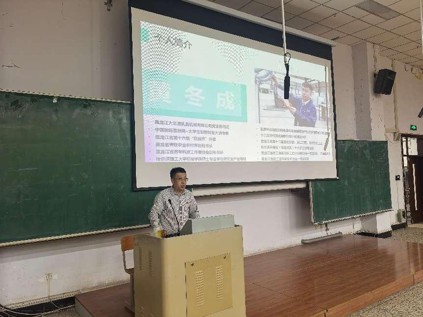 黄冬成曾获2021年哈尔滨大工匠、2022年龙江工匠、2022年黑龙江省第十三届劳动模范、黑龙江省百万职工五小创新竞赛一等奖、(2020/2021)宁夏回族自治区科技进步二等奖(2021)等荣誉称号及奖励。讲座伊始,黄冬成从公司简介、专业认知、大学四年学习经验及未来发展目标四个方面进行了详细阐述,向同学们分享自己的职业生涯规划和心路历程,强调了职业生涯规划的重要性,并表示职业生涯是人生不可或缺的重要组成部分,生涯规划则是个人职业生涯的蓝图和灯塔,一份完整的职业生涯规划会对自身产生更全面的定位,创造更有利条件,增强自身的责任感,促使自身向更高一层的目标而努力。讲座过程中,黄冬成为同学们的职业规划提供了宝贵的建议。一是认识自我,鼓励同学们通过实践深入了解自身的兴趣、性格、技能;二是明确就业形势,多与老师、学姐学长、行业楷模交流,了解就业前沿信息及所要求的职业素养;三是锚定目标,根据自身情况进行评估调整,树立科学合理的职业规划目标。